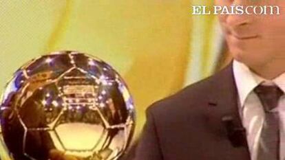 El delantero argentino del FC Barcelona Lionel Messi ha recibido esta mañana el Balón de Oro entregado por la revista France Football que le acredita como mejor futbolista del planeta, en un acto retransmitido por la televisión francesa que la Pulga aprovechó para reiterar sus agradecimientos a sus compañeros de equipo.