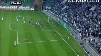 La primera gran ocasión llegó para los béticos en las botas de Sergio García que, tras varios rechaces, enganchó un disparo seco y duro que se estrelló en el estómago del defensor César cuando la pelota iba camino del gol. El público protestó el lance al entender que la pelota había impactado en las manos del jugador castellonense, aunque el colegiado, con buen criterio, dejó seguir la jugada. La gran ocasión pareció encender los ánimos del equipo local que a los pocos minutos lograría el primer gol.