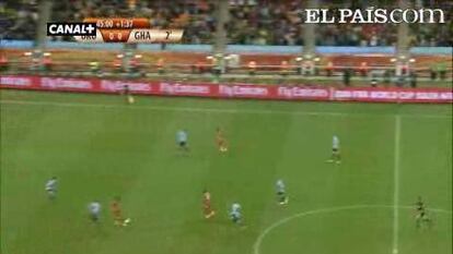 Los aficionados empezaron a cantar gol en cada remate y, como si de un sortilegio se tratara, Ghana marcó en un tiro de Muntari, el volante del Inter que reaparecía después de una ración de suplencia por indisciplinado. Arévalo debió pensar que Muntari era ingenuo y, en lugar de salir a la marca le flotó hasta que el ghanés remató con la zurda, se agachó Gyan y se venció Muslera después que la pelota botara antes de atravesar la raya.