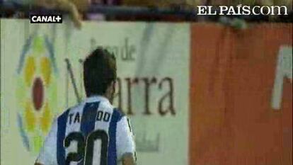 No es que Osasuna cambiara su manera de jugar. La idea principal sigue siendo la de explotar, una temporada más, el juego aéreo de Pandiani. A pesar del resultado final, la eficacia de tal apuesta no tiene por qué resultar ganadora vista la evolución del fútbol. La Real por ejemplo ha tomado la decisión de revolver al rival con un abanico más poblado. El conjunto de Lasarte agradece la combinación y trata de aplacar el nerviosismo con asociaciones cortas. No parece un equipo recién ascendido. Lo demostró ante el Real Madrid y lo hizo durante los primeros 40 minutos de partido. Cuando la goma de la careta cedió apareció Pandiani para patear lejos del Reyno esa melodía fúnebre que parecía acoplada sin remedio. De cabeza tras centro medido de Monreal llegó el empate rojillo. Antes, Tamudo había adelantado al cuadro txuriurdin tras aprovechar un rechace de la zaga pamplonica y batir por bajo a Ricardo.