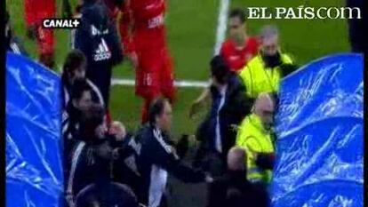 El partido de anoche en el Bernabéu fue volcánico. Entradas a destiempo, malos modos, reiteradas protestas de los futbolistas y tensión entre los banquillos del Real Madrid y el Sevilla, reflejada en la caída al suelo del delegado del equipo blanco, Agustín Herrerín, empujado por el preparador de porteros, Silvinho Louro, que se enfrentó verbalmente al ayudante de Gregorio Manzano. Sin embargo, la gresca no quedó ahí e incluso ganó voltaje en la rueda de prensa posterior ofrecida por el técnico del equipo blanco, José Mourinho.