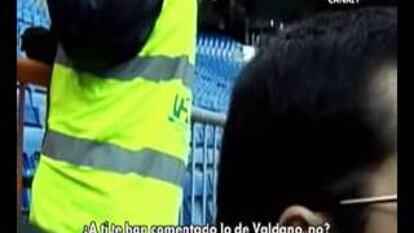 Las cámaras del programa El Día Después de Canal + descubren la conversación entre dos operarios del Madrid acerca de retirar las pancartas que pudieran ser ofensivas a Jorge Valdano.