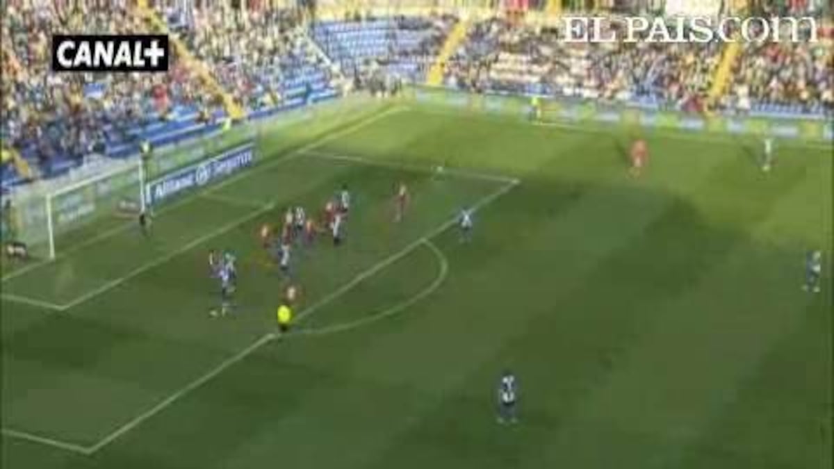Una espectacular tijera de Trezeguet en el minuto 25 supuso el primer acercamiento del Hércules. Todo un aviso del gol que dio la victoria a su equipo. Su juego por las bandas acabó casi siempre en centros imposibles o rechazados por la imponente defensa maña, así que Leo Franco apenas tuvo trabajo, por más que las llegadas se redoblaron tras la reanudación.