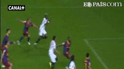 Abidal se bastaba para mantener a raya al Sevilla hasta que llegó por insistencia el gol del Barcelona, infatigable en su juego de atacar, presionar, recuperar y volver a atacar. Iniesta enfiló el área, dejó la pelota para Alves y el toque del lateral lo embocó Bojan, que convirtió un mal control en un gol, toda una noticia para un delantero que no marcaba desde el pasado 12 de diciembre. Al Barcelona le faltó instinto para acabar el partido, cosa que agradeció el Sevilla, que se escapó vivo después de un remate al larguero de Messi.