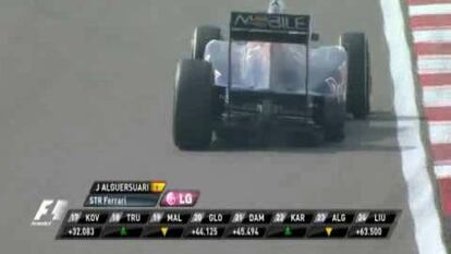 Jaime Alguersuari no tuvo ninguna opción de aprovechar la mejor clasificación de su historia en la F-1. Partió de la séptima posición y ya en la salida perdió dos posiciones. Sin embargo, aquello solo fue el presagio de lo que le iba a ocurrir. En las nueve primeras vueltas se vio superado por Michael Schumacher y Kobayashi. Y en la décima entró en el taller para cambiar neumáticos. Cuando salió a la pista, su rueda trasera derecha se desprendió del coche y voló por los aires. Jaime intentó concluir la vuelta, pero no pudo y se quedó parado en la curva 10. Su abandono fue la peor noticia. "Tuve problemas desde el primer momento, porque llevaba neumáticos usados. Pero nadie contaba con lo que ocurrió luego con mi rueda. Fue una carrera difícil, pero no todo fue negativo. Yo he dado mi máximo", explicó Alguersuari.