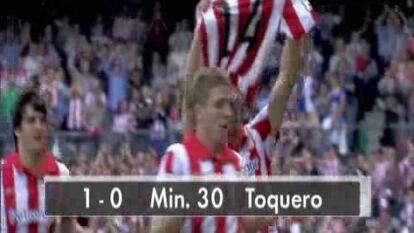 El equipo de Luis García presionó al rival las teclas más convenientes y le hizo daño recuperando balones pero no concretó objetivos. Tenía las tuercas más apretadas de lo que las tendría en todo el partido. Un pase de Muniain dio la llave a Toquero para colarle el balón entre las piernas al portero levantino. Los recursos ofensivos del equipo de García se desinflaban sin freno.