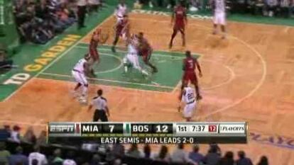 La combinación de Kevin Garnett (doble-doble de 28 puntos y 18 rebotes), Paul Pierce (27 puntos) y la gran dirección de Rajon Rondo dieron la primera victoria a los Celtcis en su serie ante Miami.