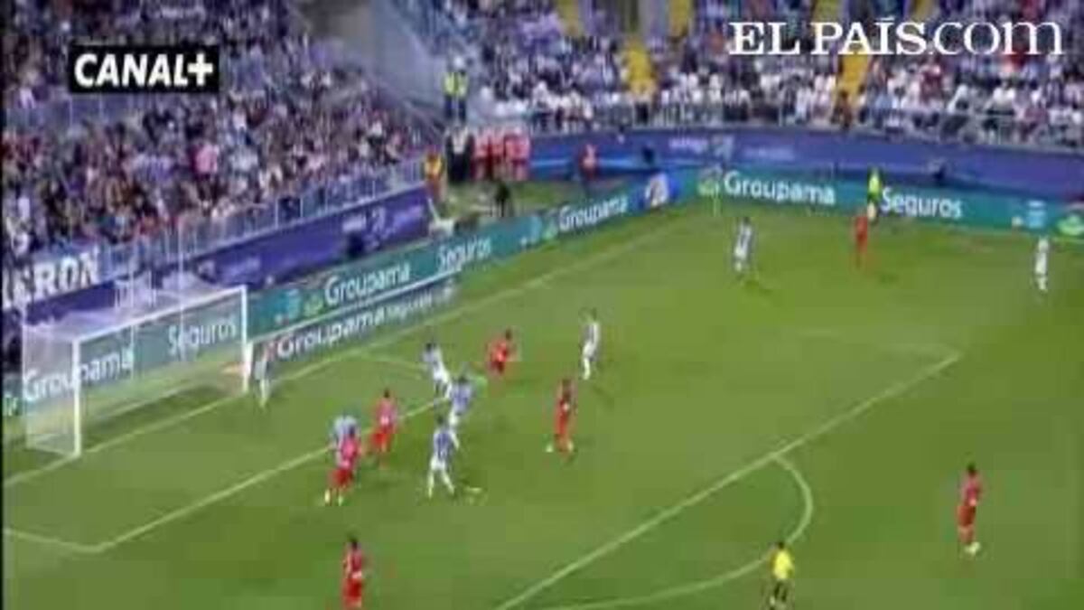 El Málaga no se pareció en nada al conjunto desestructurado del inicio liguero, y remendado -visto lo visto con éxito- en el mercado de invierno, y apenas hizo uso de los minutos de tanteo. En el minuto 9, Demichelis, que entró en la jugada en fuera de juego, bombeó de cabeza un balón a la portería de Juan Pablo. El leonés despejó de puños y Baptista, a la media vuelta, marcó el primer tanto.