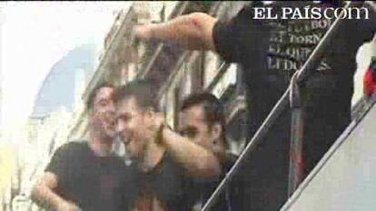 Los jugadores del Barça recorren la ciudad en un autobús descapotable