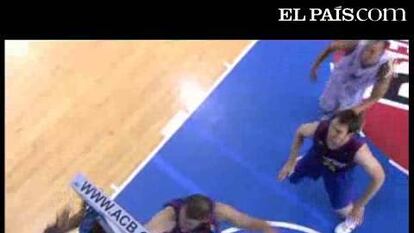 El Bilbao entró en la cancha con el entusiasmo propio del neófito ante su histórica cita. Katsikaris intentó sorprender al Barcelona con una defensa en zona. El mejor antídoto, un triple. Lo consiguió Lorbek en el primer tiro. Y a partir de ahí, el Barcelona empezó a funcionar a un nivel de revoluciones insostenible para el Bilbao. Su defensa fue de libro. El Bilbao falló seis de sus siete primeros tiros y se quedó en 12 puntos en el primer cuarto. Lorbek las metió desde todos los rincones de la cancha y, junto a Perovic y Sada, dominó el rebote. Sada, titular una vez más, en detrimento de Ricky Rubio, es uno de esos bases capaces de todo, además de las labores propias de un base. Se atreve a jugar por encima del aro y a competir por balones divididos con el pívot más feroz. Y encima, es capaz de defender a un contrincante tan incómodo, por su rapidez de piernas y de ejecución, como Jackson.