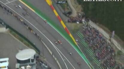 El alemán gana en Spa por delante de su compañero Webber, mientras Alonso se cae del podio al ceder ante Button a dos vueltas del final