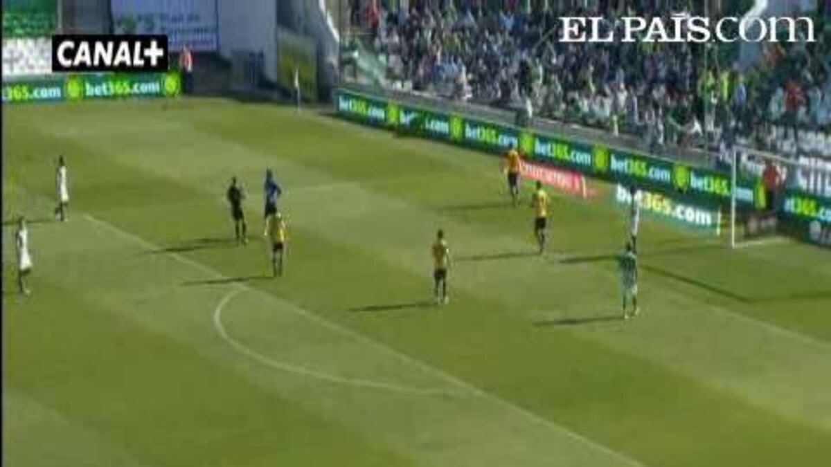 Un zurdazo desde su campo del central de la Real, que ya marcó así al Athletic, salva a Montanier en el minuto 92 y mete en muchos apuros al Betis