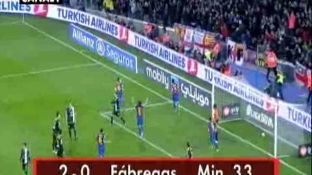 Goles: 1-0. M. 3. Cesc. 2-0. M. 33. Cesc. 3-0. M. 37. Cuenca. 4-0. M. 55. Messi. 5-0. M. 60. Alexis.