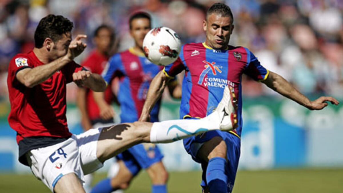 El Levante se vio sorprendido en ese tramo, pero después reaccionó con grandeza. Empujó con todo y acabó encajonando a Osasuna y ganándose una vez más el corazón de su hinchada. Ante una defensa granítica, el Levante hubo de probar a Andrés desde lejos, con tiros repelidos por los puños afilados del meta osasunista. El cuadro de JIM se empleó a fondo para equilibrar el encuentro, imprimiendo un ritmo insostenible, poniendo a toda mecha el balón en liza cada vez que se detenía. Con tantas ganas de complacer a su gente que hasta Barkero y Valdo, desacertados en el primer trecho, acabaron por subirse al tren que pretendía arrollar a Osasuna. El asedio de los minutos previos al descanso dejó a la hinchada esperanzada en la remontada, si bien había habido un enorme desgaste físico sin recompensa.