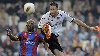 Dos brillantes acciones defensivas de Albelda despidieron la primera parte. Mestalla reconocía en su capitán los valores perdidos: coraje para sofocar situaciones de emergencia. El Levante había sido el rival marcado a fuego en la clasificación, a tres puntos de distancia, un equipo bien armado y articulado para salir al ataque con la velocidad de Valdo y el pase de Barkero. El interior derecho caboverdiano ganó casi todos los uno contra uno de la zaga valencianista, tratando de frenarlo en falta: una de Parejo, dos metros fuera del campo, junto al banquillo granota, fue especialmente grosera. Pero el Levante falló en el tiro. Koné, por ejemplo, tras driblar en un palmo a Víctor Ruiz dentro del área, pifió el disparo cuando nadie le molestaba.