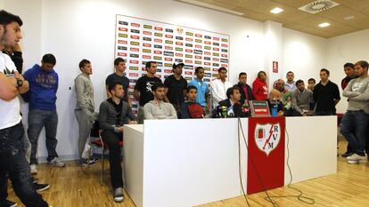 “No ha habido ningún motín. Salimos públicamente para decir que no hay ningún mal rollo. Estamos todos unidos y trabajamos en la misma dirección, que es la de salvar al Rayo”. Míchel, capitán franjirrojo, tomaba la palabra esta mañana para desmentir con rotundidad los rumores de rebelión interna. Según informó El Larguero, de la Cadena Ser, varios jugadores promovieron el despido de José Ramón Sandoval, técnico rayista, tras la goleada sufrida en el Sánchez Pizjuán ante el Sevilla (5-2) el pasado sábado. Ante esta circunstancia, y siempre según las mismas fuentes, los administradores concursales del club exigieron un informe al director deportivo, Felipe Miñambres, para destituir al entrenador, pero Miñambres se negó a elaborarlo y firmarlo. Además, y siempre según el programa, Sandoval se habría negado a aceptar una concentración de cuatro días, previa al choque decisivo ante el Granada, que fue propuesta por los gestores del club rayista en una espiral de creciente desencuentro.