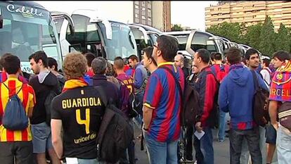 Los aficionados del Barça y del Athletic comienzan a llenar Madrid Río - Más de 1.500 policías vigilarán a los hinchas y la marcha ultraderechista prevista unas horas antes del partido