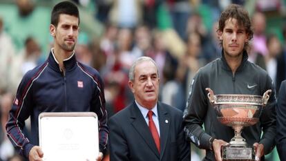 En la entrega de premios ambos deportistas se deshicieron en elogios al torneo y al público. Nadal agradeció su título en la arena roja de París salpicando su discurso de español, francés e inglés: “Gracias a todos los que hacen posible que este sea el mejor torneo del mundo. Ha sido un torneo increíble. Es un privilegio estar aquí, y jugar contra el mejor del mundo”. El público comenzó a reír, obligando a Nadal a interrumpir su discurso. Prosiguió luego para referirse a sus allegados: “Sabéis que sin vosotros me sería imposible”, le dijo a sus familiares y amigos, que le habían visto jugar desde la grada. A ellos se abrazó tras vencer a Djokovic, incluido a Pau Gasol. “Hasta la próxima”, se despidió el mallorquín, que con este séptimo título se convierte en el tenista con más títulos de Roland Garros de la historia. “Es un honor romper el récord de Borg. Estar aquí, con este trofeo, es algo inolvidable, uno de los mejores momentos de mi vida”.