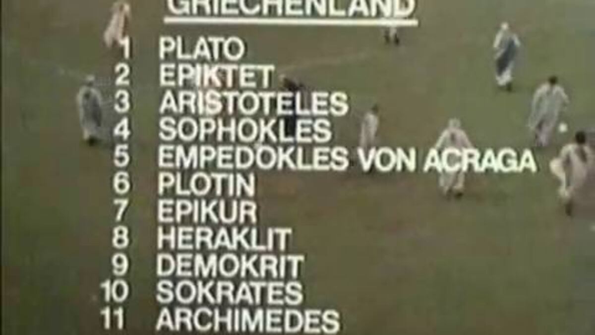 Hace años que circula por la red un maravilloso vídeo rodado por los Monty Python en el que Alemania y Grecia se enfrentaban en un partido a cara de perro, pero en el que las alineaciones respectivas estaban formadas por filósofos, una especie de la que ni Grecia ni Alemania han andado nunca escasos. Claro que ni los Monty Python se atrevieron a excluir de entre el once alemán al Kaiser, Franz Beckenbauer, que aparecía en el medio campo rodeado de la plana mayor de la intelligentzia germana. Era arrebatador ver a Karl Marx (suplente) protestar airadamente el gol de Sócrates por fuera de juego.