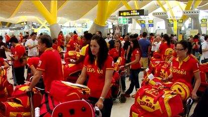 Prácticamente todos los deportistas vestían el polo y las zapatillas del uniforme olímpico español. En las colas ante los mostradores un grupo tan grande era objetivo fácil de decenas y decenas de viajeros, que se hacían fotos con los atletas, en muchos casos preguntando antes su nombre y en qué deporte competían. EL PAÍS les acompañó en esas horas antes de emprender la aventura olímpica.