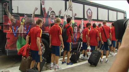 Sin excesivo tiempo para saborear el cetro europeo revalidado el pasado 1 de julio en Kiev, con caras de sueño y las piernas entumecidas después de un trayecto de ocho horas, los integrantes de la selección española aterrizaron anoche en San Juan (Puerto Rico), donde La Roja disputará mañana (22.30, TVE) un duelo preparatorio frente al combinado portorriqueño. Un duelo incómodo, metido con calzador en el calendario y frente a un rival de escaso pedigrí futbolístico –Puerto Rico ocupa el 138º peldaño del ránking de la FIFA y nunca ha disputado un Mundial–, pero que reportará dos millones de euros a las arcas de la Federación Española, empeñada en hacer las Américas desde que España alcanzase la gloria en Sudáfrica hace dos años.
