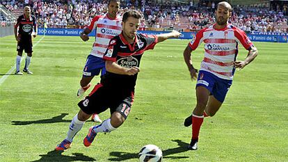 El choque quedó marcado de inicio por la alineación del Deportivo y el calor, intenso. No es lo mismo que juegue Valerón a que lo haga Camuñas en la posición de mediapunta, como tampoco es lo mismo disputar un partido en Granada, pura Andalucía, un 16 de septiembre, a las cuatro que a las ocho de la tarde. A 32 grados y con un sol de justicia, al equipo de Anquela le faltó empaque y claridad de ideas, lo que acabó por traducirse en ansiedad en un comienzo de Liga que amenaza a un técnico que no acaba de dar con la tecla. El Granada ni defiende ni ataca bien, un escenario que se convirtió en idóneo para que el Deportivo, sin grandes alardes pero con orden, supiera pescar en medio del sopor. Incluso sin Valerón, su guía. No le hizo falta pausa, la cambió por la pólvora de Oliveira.