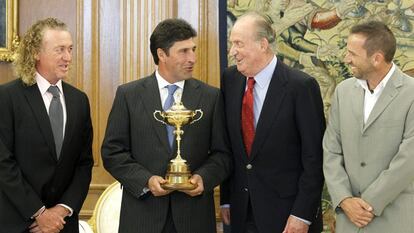 El Rey recibe a Chema Olazábal, Jiménez y Sergio García tras el trofeo de la Copa Ryder y recuerda a Ballesteros