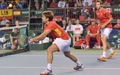 Frente al abismo de la eliminación, los maestros de maestros. España ataca el sábado con un 0-2 en contra frente a Canadá. Se juega caer en el cruce de su debut en la Copa Davis por primera vez desde 2006. Sobre la pista aparecen Marcel Granollers y Marc López, campeones de la Copa de Maestros en 2012, dos tenistas aún a prueba en la lucha por la Ensaladera: han perdido tres de los cuatro partidos que han disputado. La pareja española compite en duras circunstancias. A la remontada (4-6, 6-4, 6-7, 6-3 y 6-2; Canadá, 2; España, 1), que deja todo pendiente de los individuales de hoy (Tdp, 20.00, España nunca ha remontado un 0-2), llegan tras un duelo fiero y marcado por uno de los dos doblistas canadienses. Por supuesto, Pospisil tiene que ver en el guion del encuentro, pero quien decide la partitura del partido, quien escribe con su raqueta los borrones más oscuros y las notas más bellas es su compañero Daniel Nestor, el abuelo.