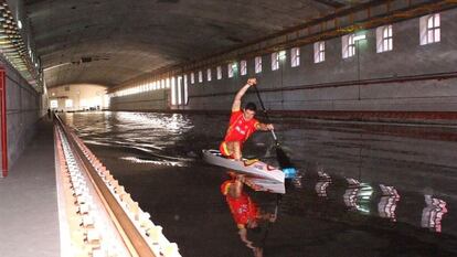 O con esos barcos, como la canoa que, pensada en Galicia y Madrid, dibujada en El Pardo (con la ayuda de los BONG: becarios ONG, ingenieros navales jóvenes que no cobraron por investigar y trabajar), experimentada en el Cehipar (pero sin piragüista, pues las aguas duras, por frías, 10 grados, del canal, y su gran profundidad, más de seis metros, no transmiten buenas sensaciones a los deportistas) y en sus aguas de Cervo (Lugo), y construida con fibra de carbono en Zamora, en el taller Román, del hermano del presidente de la federación, en dos años y medio, le permitió a Cal, según los cálculos de Morlán, ganar una décima de segundo cada 100 metros, un segundo en los 1.000. “Tres o cuatro metros de Pekín a Londres. Y eso, en una competición que se decide por centímetros, es un mundo”, dice el entrenador. “Todo, made in Spain. Demostramos que podemos ser tan buenos como los demás, o mejores”.