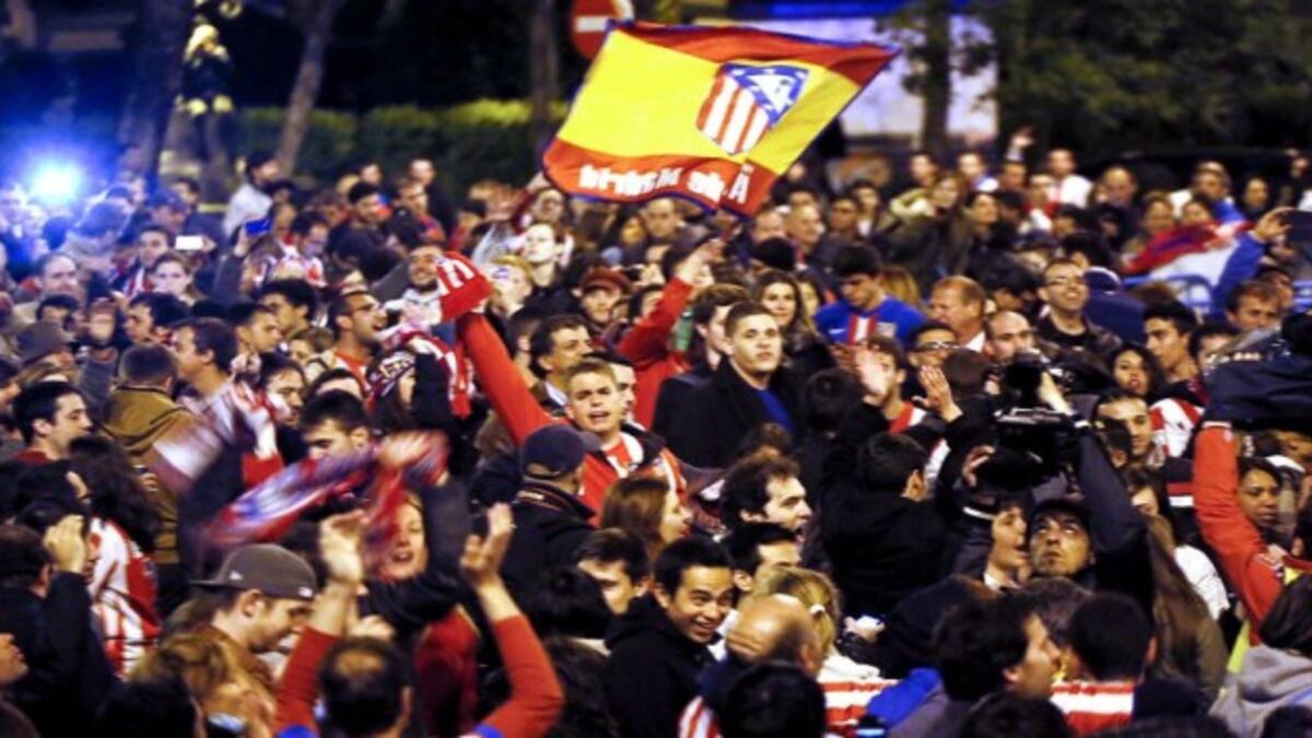 Conforme a la tradición, algo más de un millar de aficionados rojiblancos se echaron a la calle rumbo a la glorieta de Neptuno, donde se reunieron entre 10.000 y 15.000 seguidores colchoneros para celebrar la conquista con el dios del tridente. No se pudieron acercar a él por la vallas y el dispositivo policial, pero nada detuvo el jolgorio. Alzando trofeos de cartón piedra a modo de réplica, la hinchada rojiblanca invadió la plaza con bengalas, petardos y hasta algún cohete. Cantando el himno del Atlético a ráfagas y con el “Ole, ole, ole, Cholo Simeone” como banda sonora de la victoria para aderezar el entusiasmo en espera de reforzar la tropa con los refuerzos que bajaban desde el Paseo de la Castellana. El técnico argentino se convirtió en el ídolo y protagonista del improvisado guateque. El Cholo es el tercer entrenador en conquistar títulos nacionales e internacionales con el Atlético tras Villalonga y Luis Aragonés y el tercero también en alcanzar la Copa como jugador y como entrenador como ya hicieron Ovejero y el propio Aragonés.
