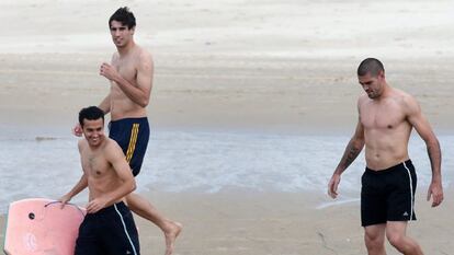 Los jugadores, tras disfrutar de una relajante mañana de playa con tablas de surf incluidas, tenían previsto entrenarse en las instalaciones de la ciudad universitaria de Fortaleza, a excepción de Soldado y Fábregas, que fueron sometidos a sendas resonancias magnéticas para valorar las molestias musculares con las que finalizaron el partido frente a Nigeria. Según los resultados de las pruebas, no se descarta la presencia en las semifinales de ninguno de los dos jugadores, el jueves ante Italia “aunque su participación definitiva dependerá de la evolución clínica de dichas molestias”.
