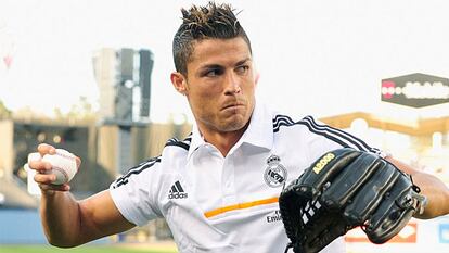 Cristiano Ronaldo posó fue la gran atracción previa al partido que disputaron anoche Los Angeles Dodgers y los New York Yankees, dos clásicos del béisbol y grandes rivales a mediados del siglo XX. La estrella del Madrid aprovechó la gira del club por Estados Unidos para realizar el lanzamiento inaugural del partido, disputado en Los Ángeles, donde está concentrado el club. El portugués coincidió con Magic Johnson, ídolo en la ciudad californiana después de ganar cinco títulos de NBA con los Lakers y luchar contra el SIDA, que dirige a un grupo de empresarios que compraron recientemente los Dodgers, una marca deportivamente en horas bajas, y han puesto mucho dinero en el club.