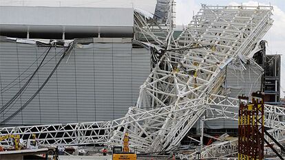 El desplome de una grúa ha provocado el derrumbe de un sector de la grada del nuevo campo de São Paulo