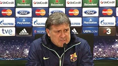 El Tata Martino, técnico del Barcelona, ha vuelto a llenar de elogios al Atlético de Madrid y al Cholo Simeone. "Ha sostenido el nivel, está fuerte y confiado", admitió de entrada el técnico argentino, que dio su particular receta para el partido de mañana (20.45): "Hemos de ganar y a ser posible, no recibir goles en contra. Nos daría un margen de cierta tranquilidad para Madrid. Pero lo primero es ganar". Admitió que una de las diferencias con los partidos anteriores tiene que ver con el estado de Messi, y apostó porque sus hombres, como en el Bernabéu, serán valientes otra vez: "Si no tuvieran valentía no hubieran hecho lo hecho ni estarían donde están. La valentía está garantizada".
