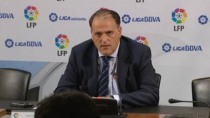 El día fue intenso. Tebas había convocado a los periodistas a las 14.00. Como la solución tenía que ser validada por la Junta Directiva de la Federación, retrasó la convocatoria a las 20.00 y de nuevo la volvió a aplazar más de dos horas hasta tener noticias de Las Rozas, a decenas de kilómetros de distancia, donde está la sede de la Federación.