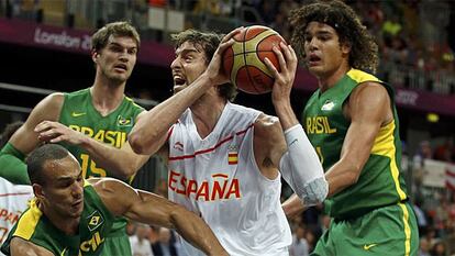 España dominó el partido desde el principio, con un 26-17 en el primer cuarto. Imponentes, los hermanos Gasol (25 puntos Pau, 20 Marc) lideraron al equipo hasta el 66-57 con el que acabó el tercer cuarto. Una renta razonable que el conjunto de Scariolo no supo gestionar. Un inopinado desplome en el último cuarto, que concluyó con un parcial de 16-31 para los brasileños y desembocó en el 82-88 definitivo, mandó España a la ruta menos escarpada rumbo a la final olímpica (Francia en cuartos y Rusia en semifinales). Con el bocinazo final se desataron las suspicacias.