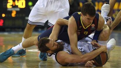 El Barcelona se reivindicó ante el Real Madrid, al que derrotó en un espléndido clásico. Vibrante y con muchas alternativas, se decantó en los dos últimos minutos, absolutamente en las antípodas de quienes especularon con la posibilidad de un resultado tan utópico como el que necesitaba el Barcelona para desbancar del liderato al Real Madrid: ganar por 25 puntos. Lo hizo por cinco, pero no por ello dejó de ser menos intenso y espléndido el duelo. Rudy llevó en volandas al Madrid, como en el primer partido, como en la final de la Copa, y Sergio Rodríguez estuvo sensacional cuando salió al rescate en el tramo final. No fue suficiente respuesta para superar las fenomenales actuaciones de Hezonja, Oleson y Lampe. Venció el Barcelona, pero lo tiene mejor el Madrid para rodar hacia la final four que se disputará precisamente en Madrid, con el peaje previo del playoff de cuartos de final.