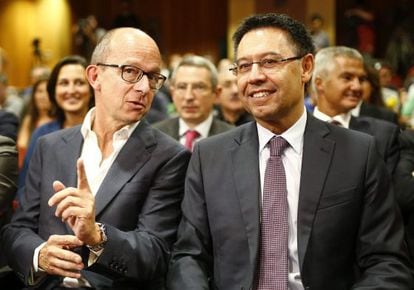 “Tenemos triplete y tenemos tridente”, presumió Bartomeu. Las elecciones del próximo 18 de julio, lo tendrán por primera vez como candidato. Aunque presidió el Barça desde enero de 2014 hasta la semana pasada, heredó el puesto de Sandro Rosell, que había ganado las elecciones en 2010. “Hemos cerrado un ciclo ganador para abrir otro con más recorrido y lo hemos hecho sin hacer ruido”, dijo el exvicepresidente deportivo. Y subrayó: “Nos hemos hecho cargo del club en una situación deportiva excelente, pero insostenible en muchas otras áreas, especialmente en la económica”.
