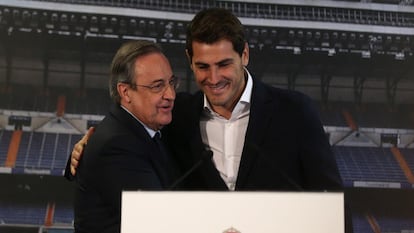 El presidente se pronunció durante unos minutos con aire sombrío. “Iker nos deja porque ese ha sido su deseo”, dijo. “Un deseo que nos trasladó y que nosotros solo podemos aceptar porque se ha ganado ese derecho. Nadie del Real Madrid le ha pedido que dejase el club. Iker lo consideró hace unos días cuando recibió una oferta del Oporto que nos trasladó de manera inmediata y nos pidió además que la tomásemos en consideración y facilitásemos el arreglo. Y eso es lo que ha hecho el Real Madrid, y yo como presidente creo que Iker se ha ganado que el club haga ese esfuerzo también como parte de ese reconocimiento a una trayectoria ejemplar”.