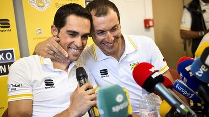 Las esperanzas de las que habló Contador, sentado a su lado, son las que tiene de que Basso derrote a la enfermedad, supere las montañas que se levantan ante él. “Para mí este es un día muy duro, pues este año he convivido con Iván 120 de los 180 días de los seis primeros meses. Seguro que dentro de dos semanas estará en París celebrando el Tour con nosotros”, dijo Contador, quien quiso mantener el optimismo y, dadas las circunstancias, prefirió no hablar de la carrera. "Vamos a dar el 100% por ganar el amarillo y brindárselo a Iván". En 2004, a los 21 años, cuando comenzaba su carrera deportiva, Contador superó un grave problema de salud, un ictus (un cavernoma cerebral) que sufrió en plena carrera, durante la disputa de la Vuelta a Asturias.
