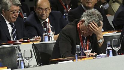 Antes de dar a conocer la que será su octava candidatura desde que accediera a la presidencia en 1988 sustituyendo a José Luis Roca (fue posteriormente reelegido en 1992, 1996, 2000, 2004, 2008 y 2012), Villar tuvo palabras para todos aquellos “que han causado un enorme daño de difícil retorno a la Federación”. Sin nombrarlos, pero advirtiendo su figura en cada una de las denuncias, tanto Miguel Cardenal, presidente del Consejo Superior de Deportes, como José Ignacio Wert, exministro de Cultura, Educación y Deportes, fueron a parar a ese grupo de señalados.