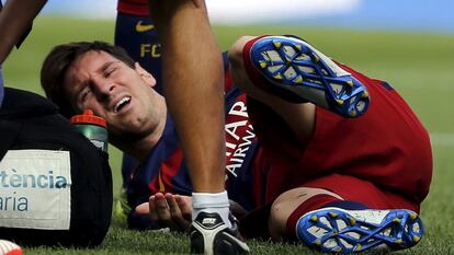 Si el fútbol es un estado de ánimo, hace mucho que el del Barcelona se mide en función de los biorritmos de Messi. Si La Pulga se constipa, el barcelonismo estornuda; si el rosarino se ríe, el aficionado culé se carcajea; y si Leo se echa la mano a la pierna (abatido por una rotura del ligamento colateral interno de su rodilla izquierda). como ante Las Palmas en el minuto tres de partido, cuando chocó con Bigas, al socio, sentado en la grada del Camp Nou o ante el televisor, le duele como si la rodilla fuera la suya. En el mejor de los casos, no volverá a jugar antes de “siete u ocho semanas”, según el parte médico del Barcelona.