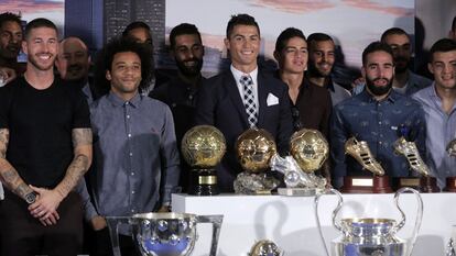 Cristiano observó al presidente menos emocionado que cuando miraba sus goles. Con un mohín de tensión que solo relajó para intentar bromear con su hijo, que parecía preocupado. Cuando el presidente acabó, el futbolista fue a su encuentro para recibir un trofeo conmemorativo: una bota plateada y una bola de cristal. Cristiano besó el artefacto animado por el griterío de sus compañeros, que no dejaban de aclamarlo muertos de risa. Benítez, Ramos, Pepe, Arbeloa y Carvajal ocupaban los primeros puestos.