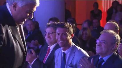 Premios que no ha parado de recibir desde que llegara al Real Madrid, al que Cristiano ha catalogado como "el club más grande del mundo". "Desde que llegué aquí supe que tenía que pensar en grande porque este es el mejor equipo. Queremos ganar Liga, Champions y Copa este año", reconoció el luso, que, como es habitual, estuvo acompañado de su hijo, Cristiano Jr y su madre además del embajador de Portugal, el director de relaciones institucionales del Madrid, Emilio Butragueño, su técnico Rafa Benítez y el máximo mandatario blanco Florentino Pérez.