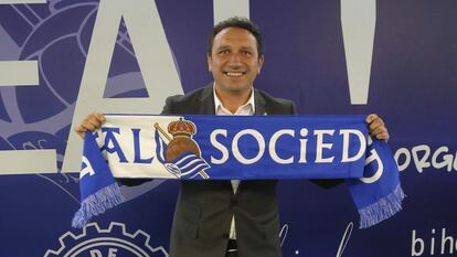 "Agradezco la confianza que han depositado en mí. Me hace mucha ilusión entrenar a este equipo, en este club. Un club con una gran historia y con una filosofía y unos valores que comparto totalmente y me siento identificado", se sinceró el nuevo técnico realista, quien confesó saberse de memoria alineaciones antiguas de equipos históricos de la Real Sociedad.