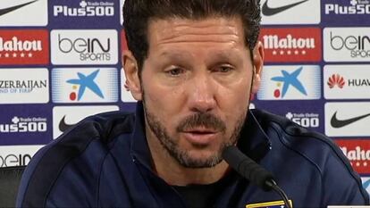 Simeone afronta el partido con el Espanyol con las bajas de Jackson, lesionado, y Gabi sancionado. A este último le suplirá Saúl. Sobre su rival concluyó: "El Espanyol está trabajando bien, han hecho muchos cambios y poco a poco se van encontrando mejor con la estructura que están sosteniendo en estos últimos partidos. Hernán Perez en bada desequilibra y es potente, Caicedo está en un muy buen momento y Asensio es el chico que ve bien el juego. Cada vez que controla busca hacer daño y mira hacia adelante. Es un chico peligroso y a partir de su juego, puede hacer cualquier contra o juego asociado. Eso son los futbolistas que siempre nos han gustado".