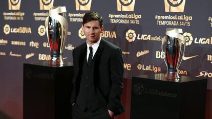 Justo en el día en que la FIFA daba a conocer a los tres finalistas del Balón de Oro (Messi, Cristiano Ronaldo y Neymar), la LFP celebró a la noche la séptima Gala de la Liga, que premiaba a los mejores futbolistas del curso anterior tanto en Primera como en Segunda División. El evento, emitido en 133 países, derrochó pomposidad y futbolistas y deportistas de lo más atildados que desfilaban por la alfombra roja al estilo de los Oscars antes de posar en el photocall con la mejor de sus sonrisas. Aunque hubo 14 categorías de premios, los grandes triunfadores fueron Leo Messi, escogido como el mejor jugador, además de mejor delantero, de la pasada temporada, y el técnico Luis Enrique, que no acudió a la cita y su galardón fue recogido por Jordi Mestre, vicepresidente deportivo del Barcelona. Sí que estuvo La Pulga, que contó una anécdota divertida tras ser nombrado el mejor. “Se lo dedico a mi hijo Thiago que cada vez que me voy de casa se enoja y me dice: ‘¿Otra vez te vas al gol papá?’ Sí hijo, otra vez me voy al gol”, relató, risueño.
