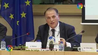 El presidente de la Liga de Fútbol española presiona en la Eurocámara para que se levante la prohibición de acudir a fondos de inversión para financiar fichajes