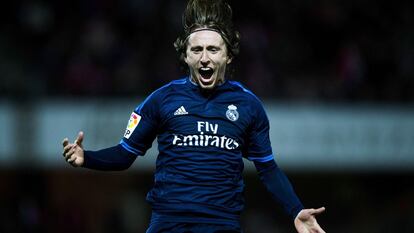 El equipo de Zidane, borroso fuera de casa, respira con un gol del centrocampista croata ante un rival tan valiente como fallón en defensa