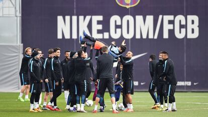 Los tres, aprovechándose de las obras en la ciudad deportiva, se han colado en el campo Tito Vilanova de la Ciutat Esportiva Joan Gamper, burlando todas las medidas de seguridad. Superada la inicial sorpresa, los jugadores, Dani Alves el primero, les han recibido afectuosamente, les han invitado a participar en un rondo, se han fotografiado con ellos y los han manteado. Cinco minutos ha tardado en volver la normalidad, hasta que Juan Carlos Unzue, el segundo entrenador, entre risas, ha dado por terminado el jolgorio y ha invitado a los chavales a abandonar el campo de trabajo.
